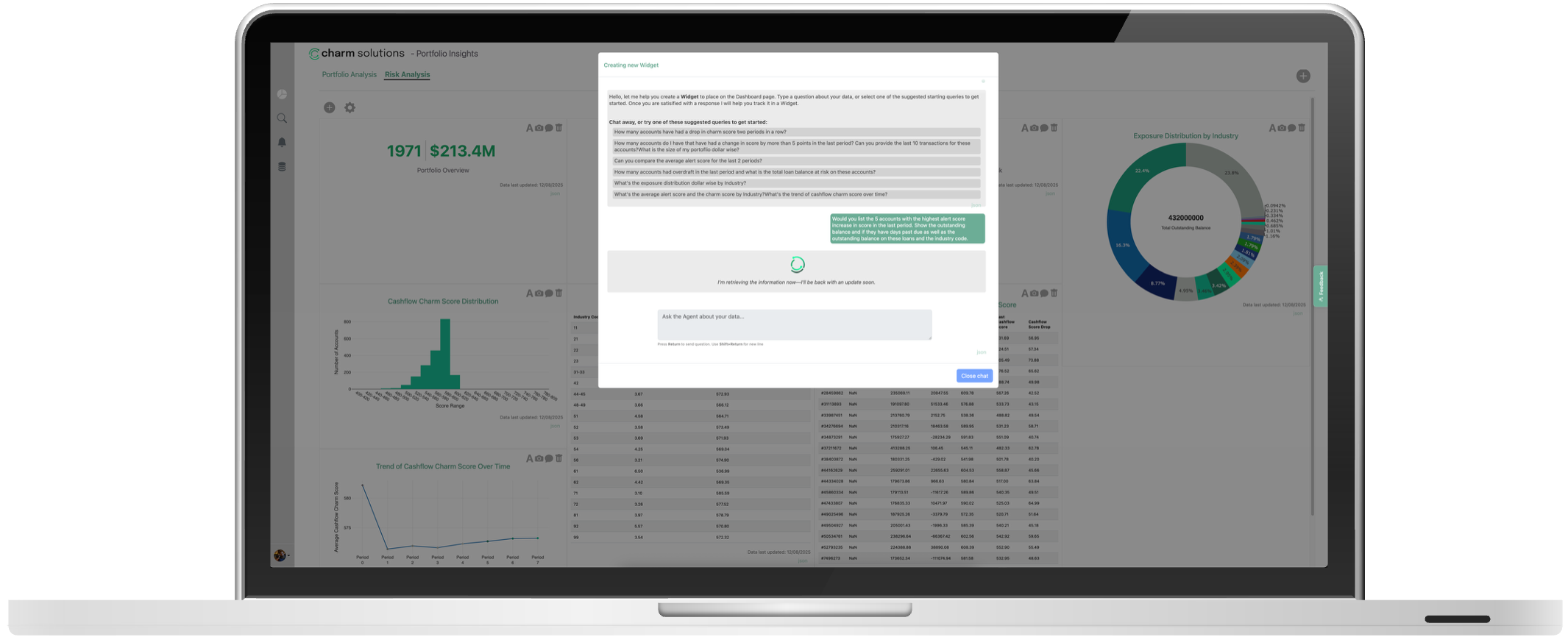 CHARM AI powered widgets embed directly into your current financial applications, enabling access to key features and insights into your customer's financial health.